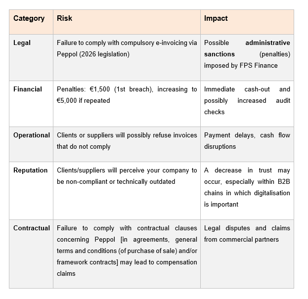1.3 Risks with regard to a failure to fulfil the Peppol requirements (Belgium, B2B from 1 January 2026 onwards)