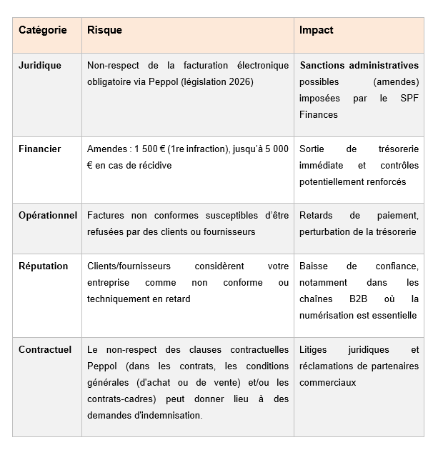 1.3 Risques en cas de non-respect des obligations PEPPOL (Belgique, B2B à partir du 1er janvier 2026)