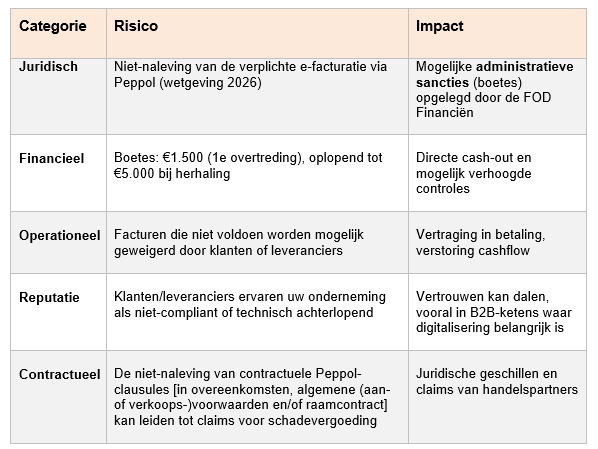 1.3 Risico’s bij het niet voldoen aan de PEPPOL-verplichtingen (België, B2B vanaf 1 januari 2026)